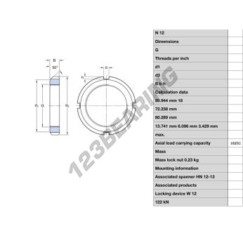 Deze moer heeft een binnendiameter van 59.944mm, een buitendiameter van 80.289mm en een dikte van 13.741mm.