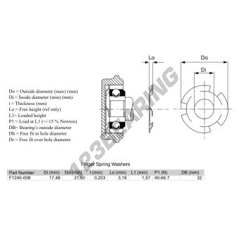 Het Veerring met referentie F1240-009 heeft een binnendiameter van 17.48 mm, een buitendiameter van 31.5 mm en een dikte van 0.203 mm.