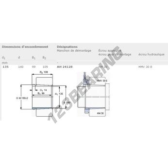 Het Mouw, bekend als het AH24128-SKF SKF, heeft een binnendiameter van 135 mm, een buitendiameter van 140 mm en een dikte van 99 mm.