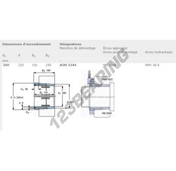 Het Mouw, bekend als het AOH2344-SKF SKF, heeft een binnendiameter van 200 mm, een buitendiameter van 220 mm en een dikte van 181 mm.