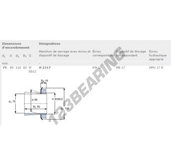 Het Mouw, bekend als het H2317-SKF SKF, heeft een binnendiameter van 75 mm, een buitendiameter van 110 mm en een dikte van 82 mm.