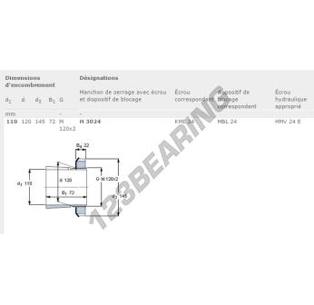 Het Mouw, bekend als het H3024-SKF SKF, heeft een binnendiameter van 110 mm, een buitendiameter van 145 mm en een dikte van 72 mm.