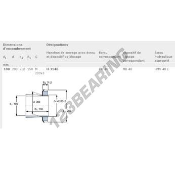 Het Mouw, bekend als het H3140-SKF SKF, heeft een binnendiameter van 180 mm, een buitendiameter van 250 mm en een dikte van 150 mm.
