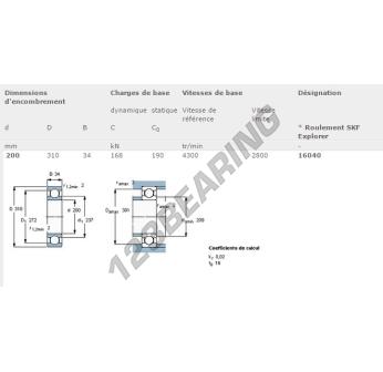 Het Kogellager, bekend als het 16040-SKF SKF, heeft een binnendiameter van 200 mm, een buitendiameter van 310 mm en een dikte van 34 mm.