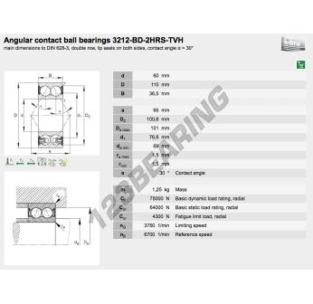 Het Kogellager, bekend als het 3212-BD-XL-2HRS-TVH-FAG FAG, heeft een binnendiameter van 60 mm, een buitendiameter van 110 mm en een dikte van 36.5 mm.