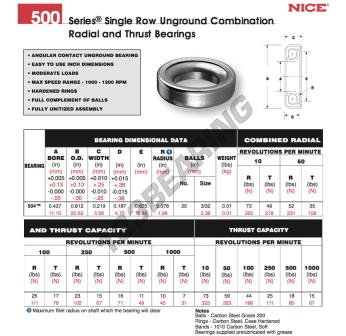 Het Kogellager, bekend als het 504-NICE NICE, heeft een binnendiameter van 11.1 mm, een buitendiameter van 20.62 mm en een dikte van 5.56 mm.
