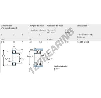 Het Kogellager, bekend als het 61810-2RS1-SKF SKF, heeft een binnendiameter van 50 mm, een buitendiameter van  65 mm en een dikte van 7 mm.