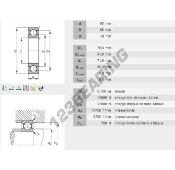 Het Kogellager, bekend als het 61813-Y-INA INA, heeft een binnendiameter van 65 mm, een buitendiameter van  85 mm en een dikte van 10 mm.