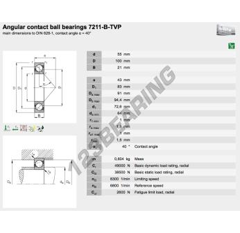 Het Kogellager, bekend als het 7211-B-XL-TVP-FAG FAG, heeft een binnendiameter van 55 mm, een buitendiameter van 100 mm en een dikte van 21 mm.