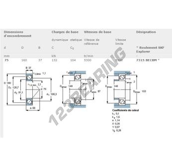 Het Kogellager, bekend als het 7315-BECBM-SKF SKF, heeft een binnendiameter van 75 mm, een buitendiameter van 160 mm en een dikte van 37 mm.