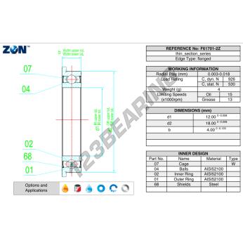 Het Kogellager, bekend als het F61701-ZZ-ZEN ZEN, heeft een binnendiameter van 12 mm, een buitendiameter van 18 mm en een dikte van 4 mm.