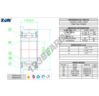 Het Kogellager, bekend als het F694-2Z-ZEN ZEN, heeft een binnendiameter van 4 mm, een buitendiameter van 11 mm en een dikte van 4 mm.