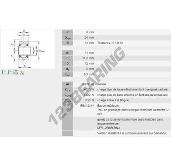 Het Kogellager Rol, bekend als het LFR22-8-6-2RSR-NA-INA INA, heeft een binnendiameter van 8 mm, een buitendiameter van 24 mm en een dikte van 14 mm.