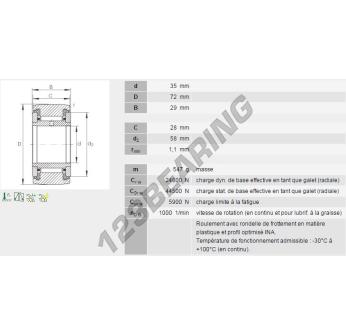 Het Kogellager Rol, bekend als het NATR35-PP-INA INA, heeft een binnendiameter van 35 mm, een buitendiameter van 72 mm en een dikte van 29 mm.