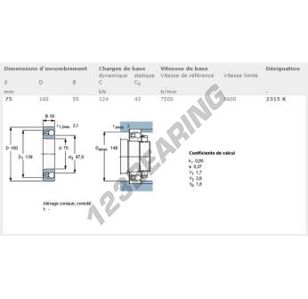 Het Zich Instellende Kogellager, bekend als het 2315-K-SKF SKF, heeft een binnendiameter van 75 mm, een buitendiameter van 160 mm en een dikte van 55 mm.