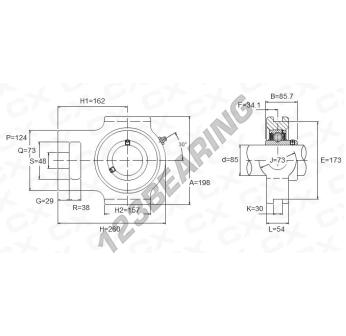 Het Lagerblok - 1 Bevestiging bekend als UCT217 Algemeen heeft een interne diameter van 85 mm. Deze referentie is gemaakt door gietijzer en het type bevestiging is .