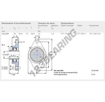 Het Lagerblok - 2 Bevestigingen bekend als FYT7-8-RM-SKF SKF heeft een asdiameter van 22.23 mm en een centrumafstand van 98.8 mm. Dit onderdeelnummer is vervaardigd in gietijzer en het type bevestiging is .