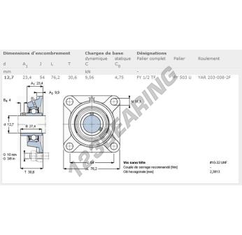 Het Lagerblok - 4 Bevestigingen bekend als FY1-2-TF-SKF SKF heeft een asdiameter van 12.7 mm en een centrumafstand van 54 mm. Dit onderdeelnummer is vervaardigd in gietijzer en het type bevestiging is .