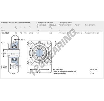 Het Lagerblok - 4 Bevestigingen bekend als FY15-16-TF-SKF SKF heeft een asdiameter van 23.81 mm en een centrumafstand van 70 mm. Dit onderdeelnummer is vervaardigd in gietijzer en het type bevestiging is .