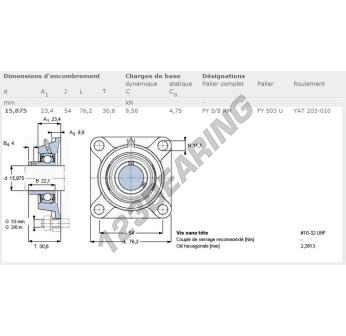 Het Lagerblok - 4 Bevestigingen bekend als FY5-8-RM-SKF SKF heeft een asdiameter van 15.88 mm en een centrumafstand van 54 mm. Dit onderdeelnummer is vervaardigd in gietijzer en het type bevestiging is .