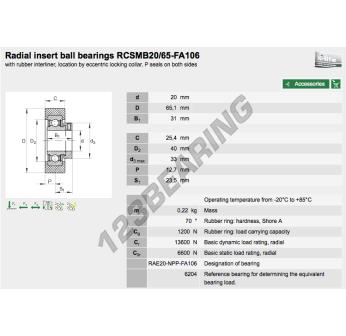 De Lagerblok Toebehoren bekend als RCSMB20-65-XL-FA106-INA INA meet 20 mm in binnendiameter, 65.1 mm in buitendiameter en 31 in dikte. Het is gemaakt in .