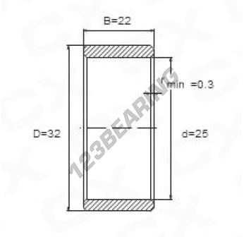 De Binnenring bekend als IR25X32X22 Algemeen meet 25 mm in binnendiameter, 32 mm in buitendiameter en 22 mm lengte. Het is gemaakt in .