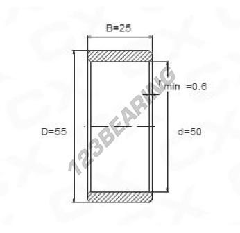 De Binnenring bekend als IR50X55X25 Algemeen meet 50 mm in binnendiameter, 55 mm in buitendiameter en 25 mm lengte. Het is gemaakt in .