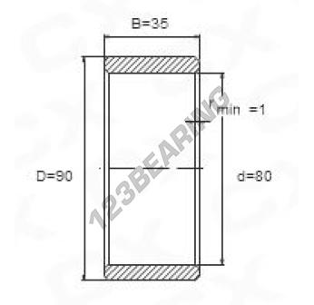 De Binnenring bekend als IR80X90X35 Algemeen meet 80 mm in binnendiameter, 90 mm in buitendiameter en 35 mm lengte. Het is gemaakt in .