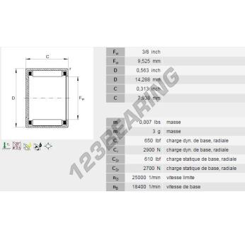 Het Naaldhulslager , bekend als het BCE65-INA INA, heeft een binnendiameter van 9.53 mm, een buitendiameter van 14.29 mm en een dikte van 7.92 mm.