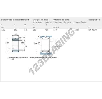 Het Naaldlager, bekend als het NA4838-SKF SKF, heeft een binnendiameter van 190 mm, een buitendiameter van  240 mm en een dikte van 50 mm.