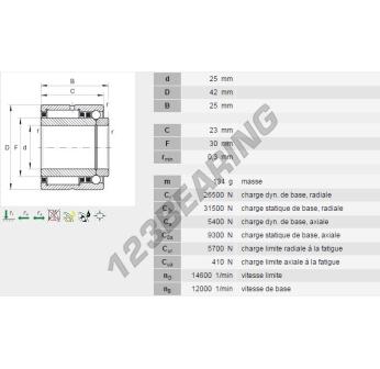 Het Naaldlager, bekend als het NKIB5905-INA INA, heeft een binnendiameter van 25 mm, een buitendiameter van 42 mm en een dikte van 25 mm.