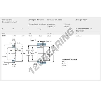 Het Kegellager, bekend als het 33122-SKF SKF, heeft een binnendiameter van 110 mm, een buitendiameter van 180 mm en een dikte van 56 mm.