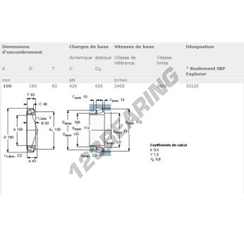 Het Kegellager, bekend als het 33220-SKF SKF, heeft een binnendiameter van 100 mm, een buitendiameter van 180 mm en een dikte van 63 mm.