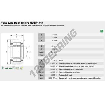 Het Roller, bekend als het NUTR1747-INA INA, heeft een binnendiameter van 17 mm, een buitendiameter van 47 mm en een dikte van 21 mm.