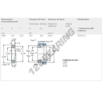 Het Rollager, bekend als het 30224-J2-SKF SKF, heeft een binnendiameter van 120 mm, een buitendiameter van 215 mm en een dikte van 43.5 mm.