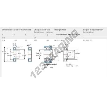 Het Rollager, bekend als het NJ215-ECJ-SKF SKF, heeft een binnendiameter van 75 mm, een buitendiameter van 130 mm en een dikte van 25 mm.
