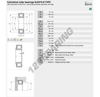 Het Rollager, bekend als het NJ2215-E-TVP2-FAG FAG, heeft een binnendiameter van 75 mm, een buitendiameter van 130 mm en een dikte van 31 mm.