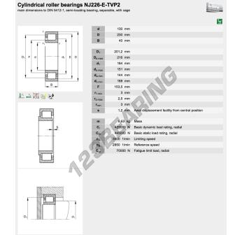 Het Rollager, bekend als het NJ226-E-TVP2-FAG FAG, heeft een binnendiameter van 130 mm, een buitendiameter van 230 mm en een dikte van 40 mm.