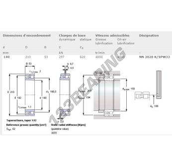 Het Rollager, bekend als het NN3028K-SPW33-SKF SKF, heeft een binnendiameter van 140 mm, een buitendiameter van 210 mm en een dikte van 53 mm.
