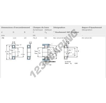Het Rollager, bekend als het NU1014-ECP-SKF SKF, heeft een binnendiameter van 70 mm, een buitendiameter van 110 mm en een dikte van 20 mm.