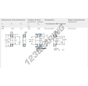 Het Rollager, bekend als het NU213-ECM-SKF SKF, heeft een binnendiameter van 65 mm, een buitendiameter van 120 mm en een dikte van 23 mm.