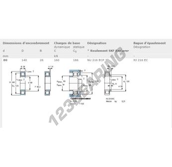 Het Rollager, bekend als het NU216-ECP-SKF SKF, heeft een binnendiameter van 80 mm, een buitendiameter van 140 mm en een dikte van 26 mm.