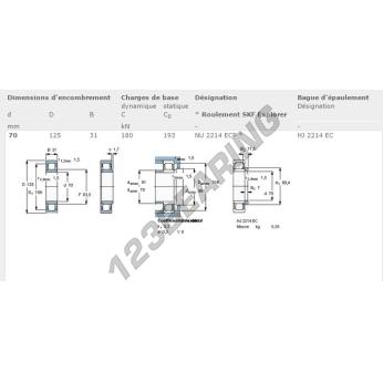 Het Rollager, bekend als het NU2214-ECP-SKF SKF, heeft een binnendiameter van 70 mm, een buitendiameter van 125 mm en een dikte van 31 mm.