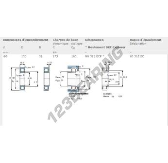 Het Rollager, bekend als het NU312-ECP-SKF SKF, heeft een binnendiameter van 60 mm, een buitendiameter van 130 mm en een dikte van 31 mm.