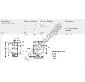 Het Sferische Rollagers, bekend als het 22213-E-SKF SKF, heeft een binnendiameter van 65 mm, een buitendiameter van 120 mm en een dikte van 31 mm.
