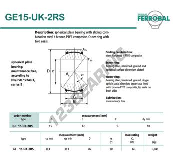 Het Geew Gewrichtslager bekend als DGE15-UK-2RS-DURBAL DURBAL heeft een interne diameter van 15 mm, een externe diameter van 26 mm en een dikte van 9 mm.