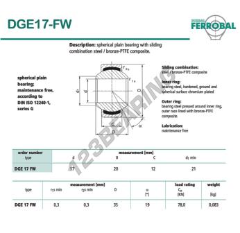Het Geew Gewrichtslager bekend als DGE17-FW-DURBAL DURBAL heeft een interne diameter van 17 mm, een externe diameter van 35 mm en een dikte van 12 mm.