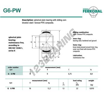 Het Geew Gewrichtslager bekend als G6-PW-DURBAL DURBAL heeft een interne diameter van 6 mm, een externe diameter van 16 mm en een dikte van 6.75 mm.