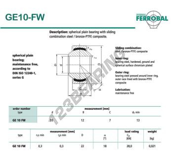 Het Geew Gewrichtslager bekend als GE10-FW-DURBAL DURBAL heeft een interne diameter van 10 mm, een externe diameter van 22 mm en een dikte van 7 mm.
