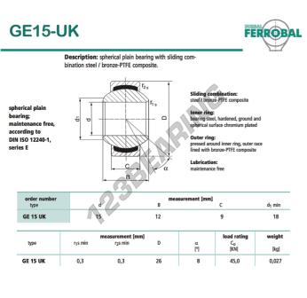 Het Geew Gewrichtslager bekend als GE15-UK-DURBAL DURBAL heeft een interne diameter van 15 mm, een externe diameter van 26 mm en een dikte van 9 mm.